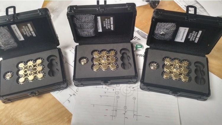 산업 분야에서 가져온 9 개의 실제 강철 기어로 구성됩니다. 기어는 1117 강철로 만들어지고 다른 구성 요소는 황동과 SS로 만들어집니다. 스피너의 무게는 118g이며 600 달러에 판매됩니다. 얼핏보면 장난감이 아닌 무기로 보여질만큼 독특한 구성으로 판매되고 있네요.
